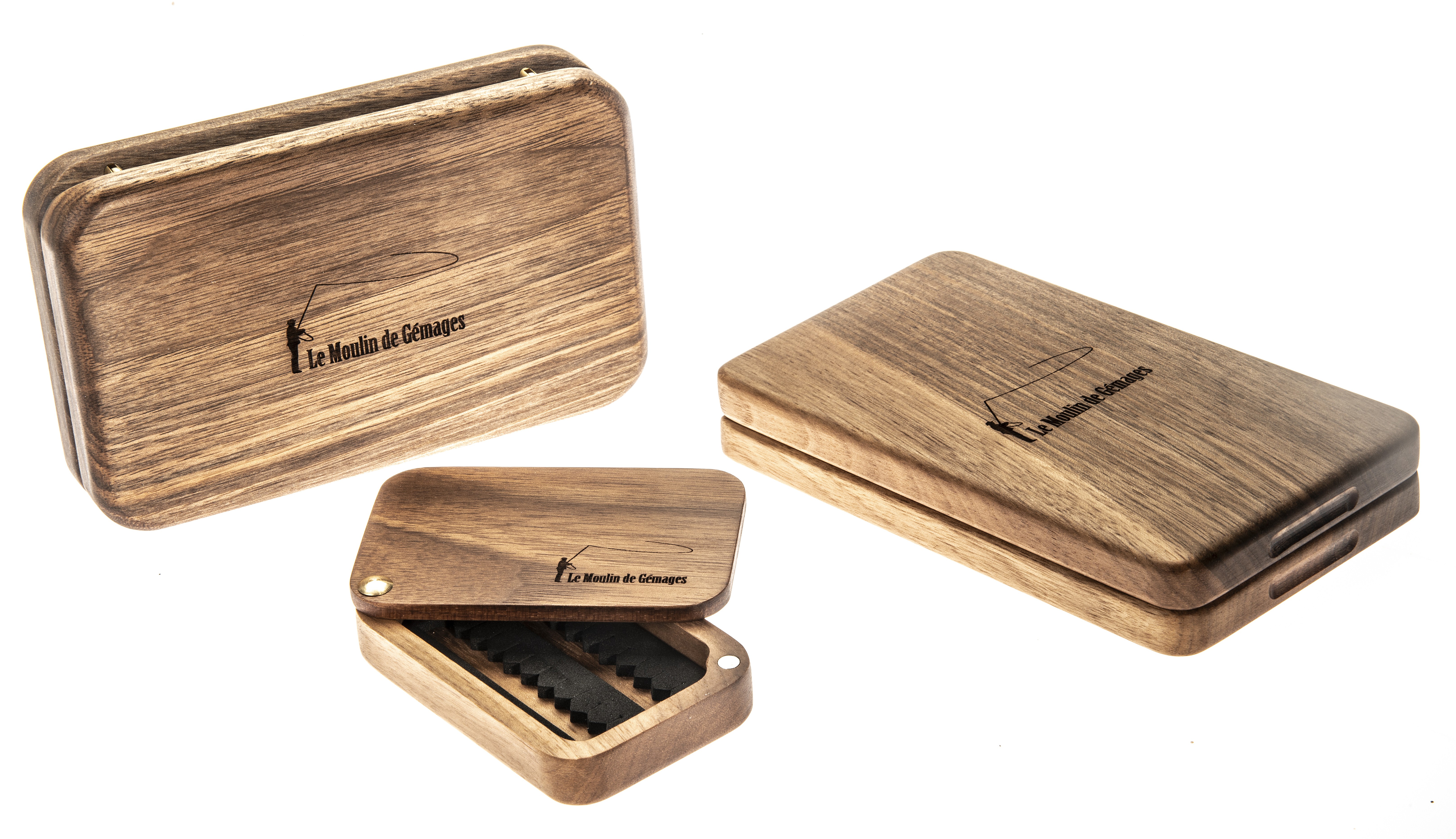Le Moulin de Gémages a sélectionné des produits de pêche à la mouche de qualité sur lesquels il appose une personnalisation ou une customisation spécifique. Ce travail de création et de réalisation, engagé en collaboration d'artisans passionnés, valorise vos objets et en fait des objets hors norme, insolites (exemple : différentes gravures sur les moulinets et nippers Abel, insertion d'ébène sur les poignées des cannes Thomas & Thomas,...)